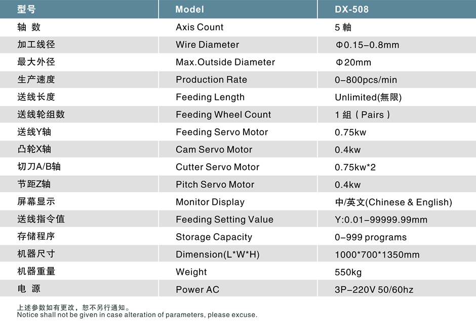 Machine Features: DX-508 is good combination of speed and precision. With Taiwan Controller and Japanese Industrial Servo Motor, it is consisted